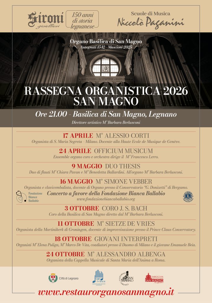 Dal 17 aprile al 31 ottobre 2026, la Basilica di San Magno di Legnano ospita la Prima Rassegna Organistica S. Magno, un progetto culturale di grande spessore che celebra la tradizione dell’organo attraverso un percorso musicale di alto profilo artistico. L’ingresso a tutti i concerti è libero fino a esaurimento posti, offrendo a tutti l’opportunità di vivere la magia della musica organistica in un contesto unico.