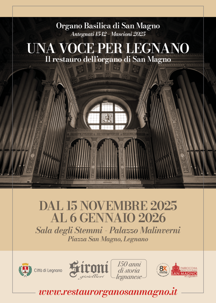 Il progetto, sostenuto con generosità dalla Famiglia Sironi in occasione dei 150 anni della storica gioielleria legnanese, ha coinvolto le eccellenze artigiane di Mascioni Organi e Casati Restauri, restituendo alla città un patrimonio di inestimabile valore. Attraverso fotografie e racconti, la mostra accompagna il visitatore tra storia, tecnica e bellezza, svelando il cuore sonoro della Basilica e il profondo legame tra l’organo, la comunità e la sua fede.